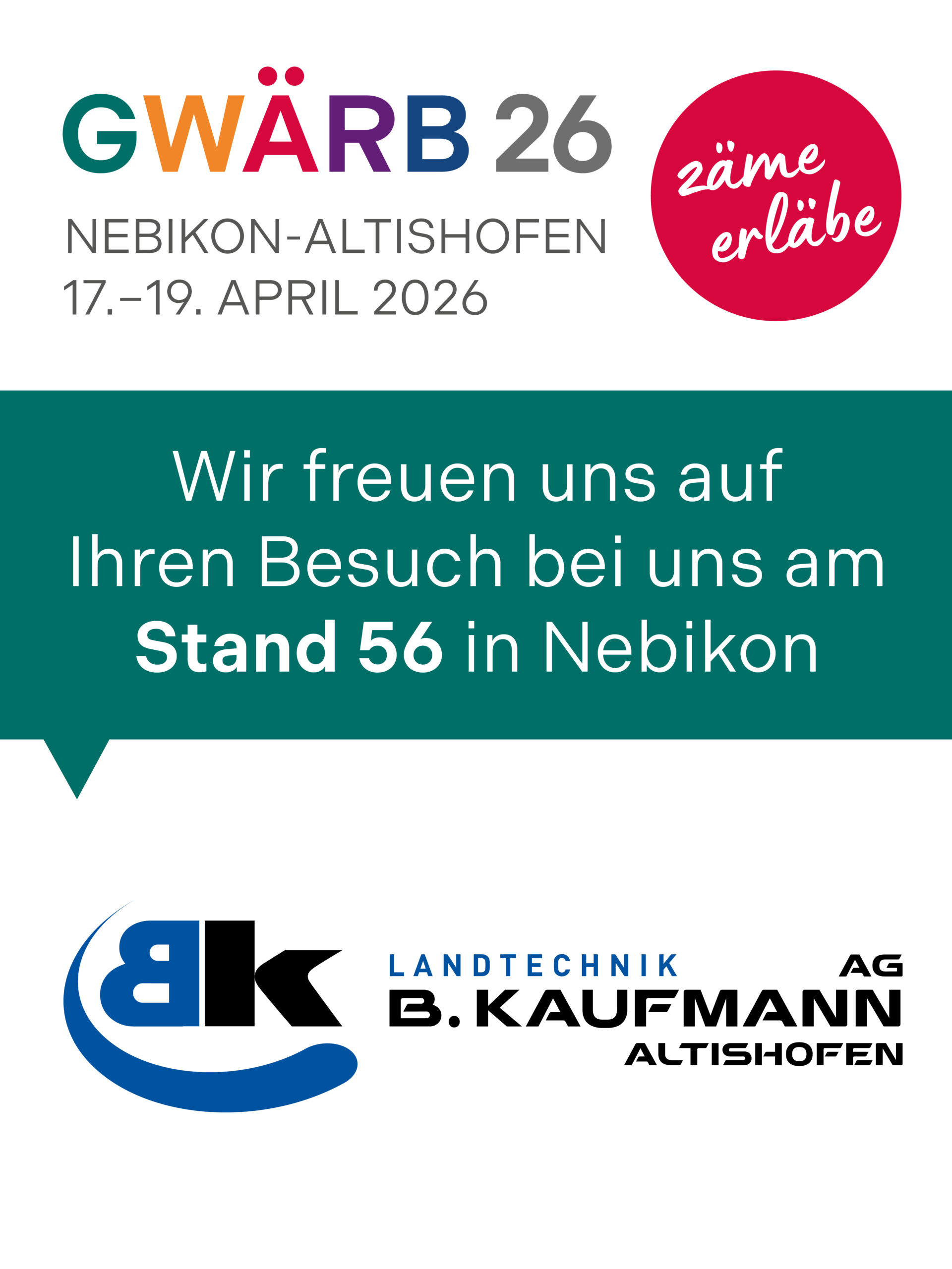 Wegen unseres Abteilungsausflugs ist unsere Landtechnikabteilung am Freitag nur eingeschränkt und am Samstag gar nicht erreichbar. Gerne sind wir am Montag, 16. März 2026 wieder für Sie da. Besten Dank für Ihr Verständnis.